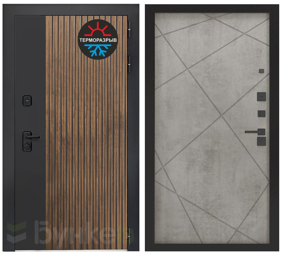 «Терморазрыв» обеспечивается наличием полиамидного профиля шириной 7 мм,  имеющий низкий коэффициент  теплопроводности. Полиамидный профиль расположен  по всему периметру дверного полотна и дверной коробки.