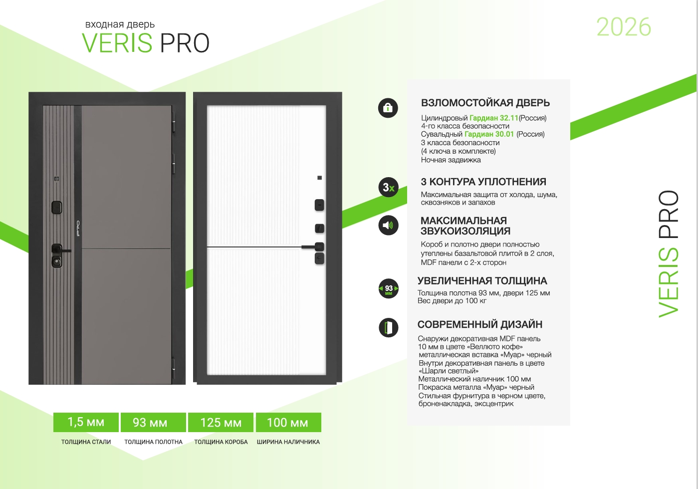 Взломостойкая дверь, Прочная сталь 1,5 мм, Металл с 2-х слойным покрытием. 1 слой - цинкосодержащий грунт, 2 слой - покраска "Муар" черный